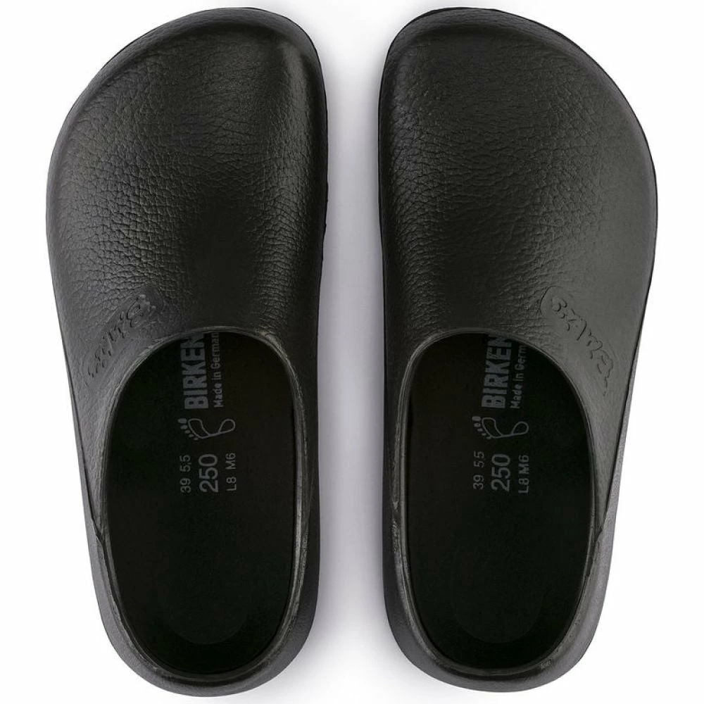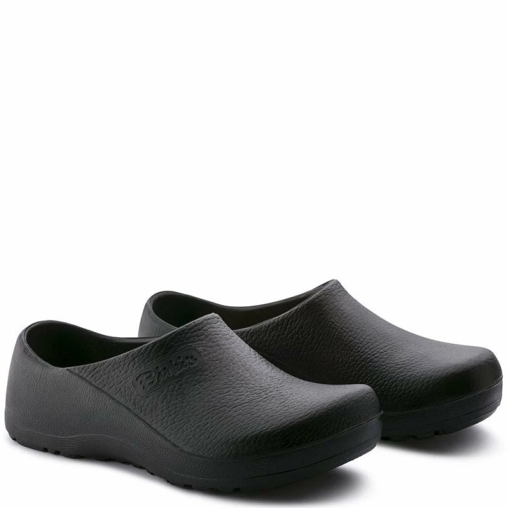The Profi Birki PU (polyurethane) clog is suitable for a variety of professional applications. With its raised heel section, this popular clog provides the feet with all-around protection and grip. The flexible PU material features a smooth surface and is not only oil- and grease resistant, but water- and dirt-resistant, too. As a result, the Profi Birki is virtually predestined for use in kitchens and restaurants. The Profi Birki has been certified in accordance with EN ISO 20347:2012 OB E (SRB category).