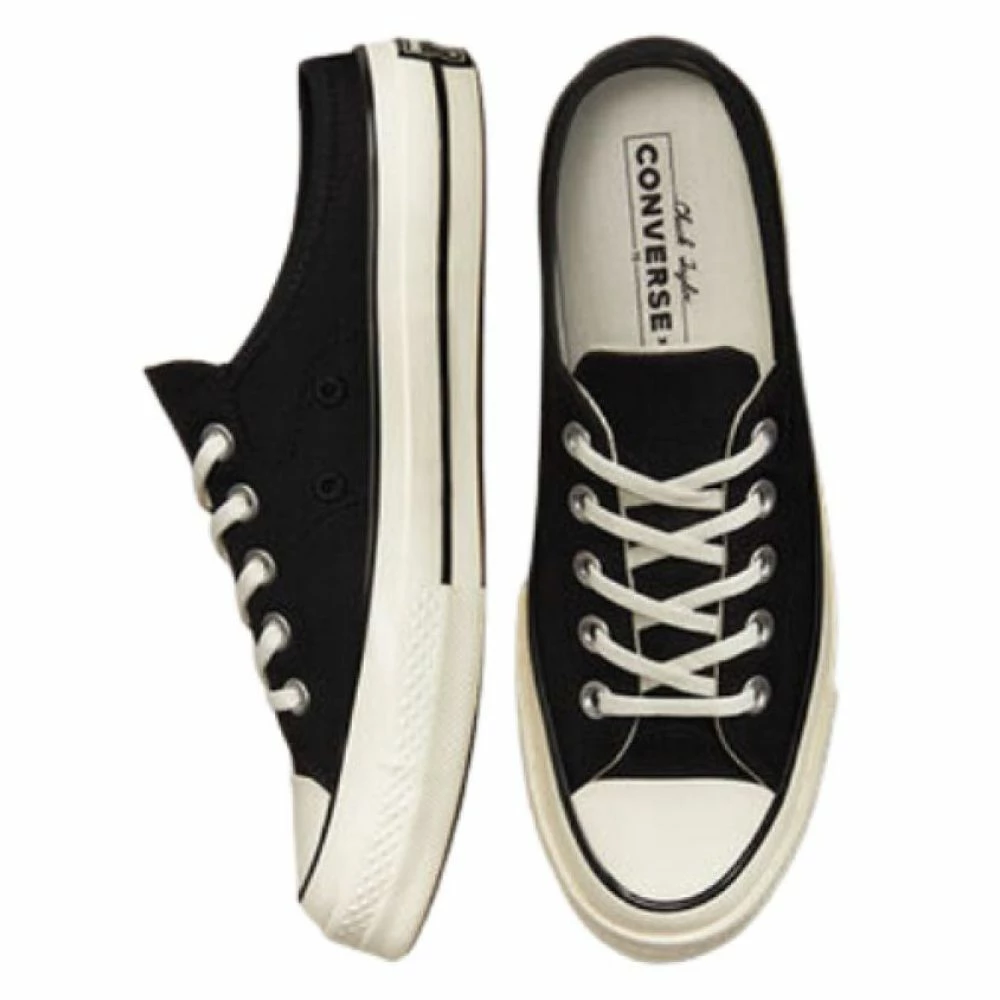 A new, easy-on design transforms the premium Chuck 70 sneaker into a spring-ready mule. The upper is made with the future in mind using recycled canvas. Curved, closed seams create a split-pattern design, stylizing the slip-on look. With the elevated detailing of the original, like a glossy, egret midsole, cushioned OrthoLite sockliner, and winged tongue stitching.