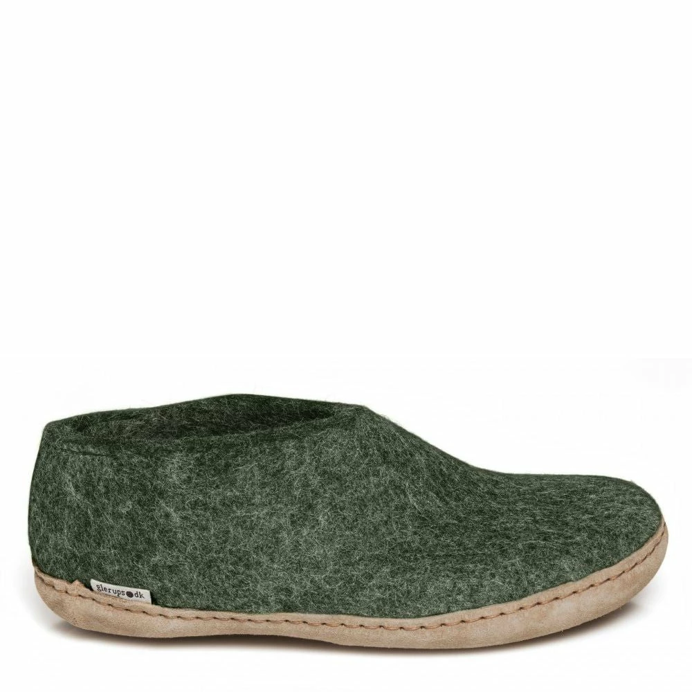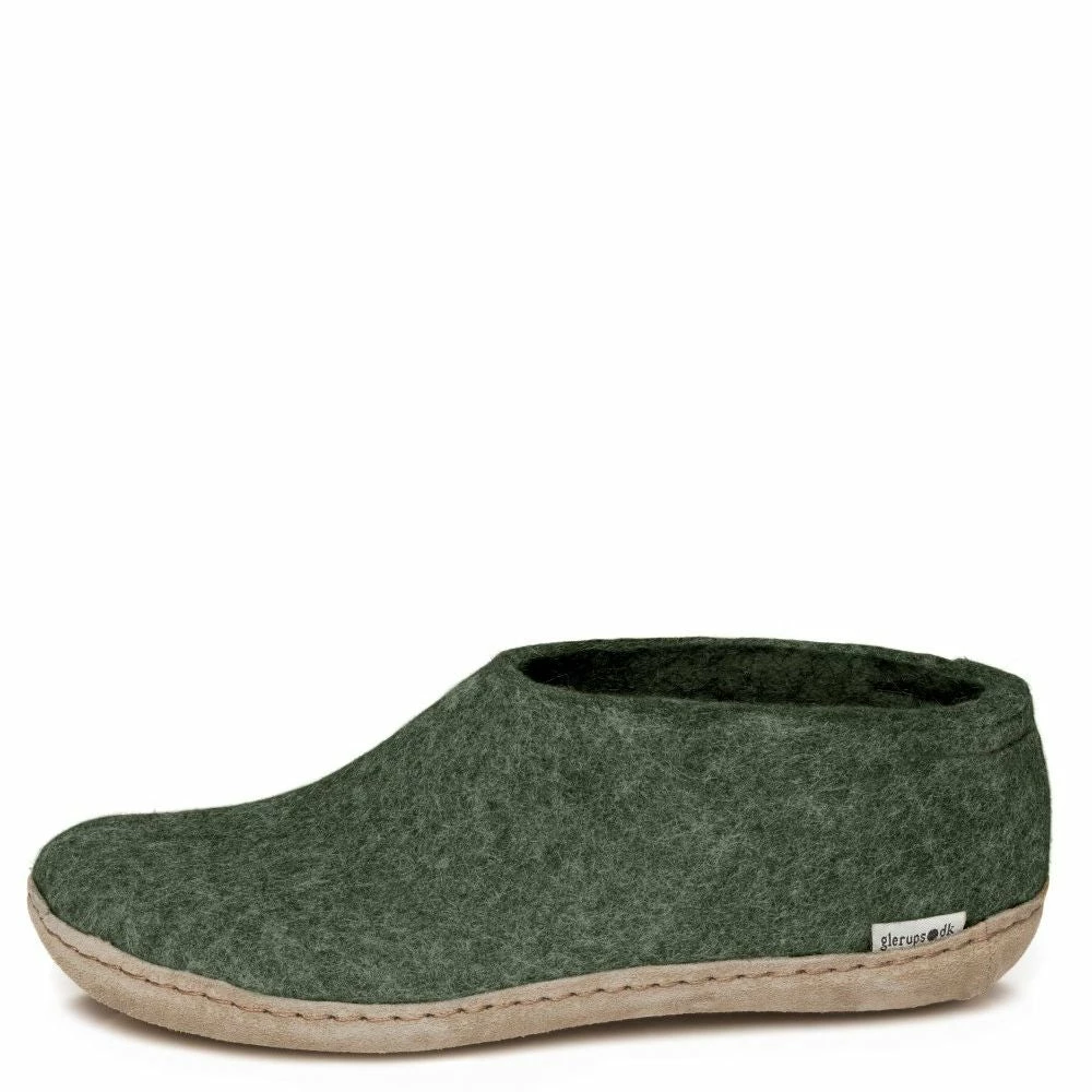 The Glerups Shoe Leather Sole in Forest is the perfect indoor footwear for barefoot comfort around the house or chalet, where cold floors are a fact of Canadian life. Get more warmth and the comfort of on-the-foot 100% pure wool shoe.